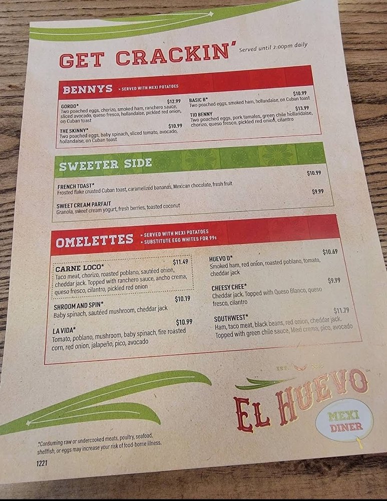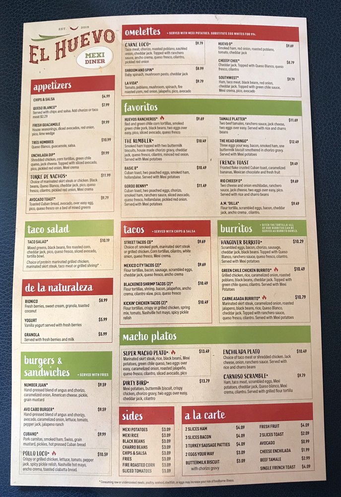 Introducing the menu at El Huevo Mexi-Diner, a Tex-Mex gem in Norman, Oklahoma. This trendy spot offers a diverse range of Mexican and diner-style dishes perfect for breakfast, brunch, lunch, and dinner. With vegan and vegetarian options, as well as happy hour specials and a full bar, there's something for everyone. Customer reviews rave about the fresh, flavorful food, from grilled chicken fajitas to enchiladas and burritos. Portions are generous, prices are reasonable, and the staff is friendly and knowledgeable. The tres leches dessert and unique nacho presentation are standout items worth trying. El Huevo Mexi-Diner is a must-visit for those craving South of the border fare in a vibrant and welcoming atmosphere.